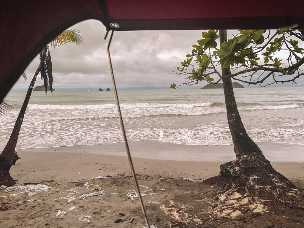 De eerste kampeerplek is Playa Bejuco. Op de lijst van Nomad America vonden wij op zo’n twee uur rijden van Nomad de camping Los Garrobos aan de Calle Bejuco. Dit leek ons een prima eerste stop, omdat we pas in de middag vertrokken en graag de daktent de eerste keer met daglicht op wilden zetten.Toch hebben we ervoor gekozen om niet op de camping te gaan staan, maar om te gaan wildkamperen vlakbij de camping aan het strand. Een goede keuze want we werden ‘s ochtends wakker met een geweldig uitzicht en met niemand om ons heen! Je roadtrip beter beginnen kan bijna niet.