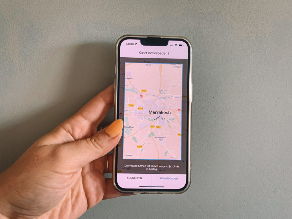 Zorg er voor dat je voor vertrek de kaart van Marrakech download zodat je deze offline kunt gebruiken. De Medina is een doolhof van straatjes en smalle steegjes, wat het heel gezellig maakt, maar waardoor het niet gek is als je hier verdwaald. Door een offline kaart van de sta te hebben hoef je niet te verdwalen en weet je altijd de weg terug naar je accommodatie. Deze kaart kan je downloaden via de app van Google Maps. Ook Maps.me is hier goed bruikbaar voor.